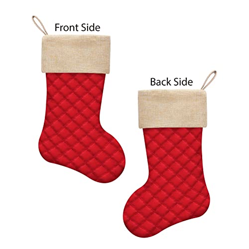 Duosheng & Elegant 3 Calze Befana Rosso Calza di Natale da Appendere Grande Cotone Calze Camino Natale per Natale Decorazioni Casa