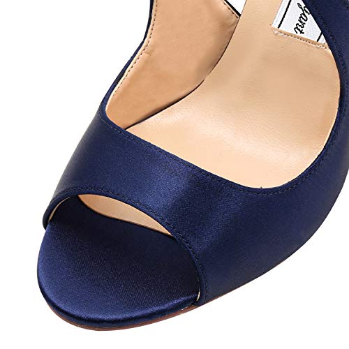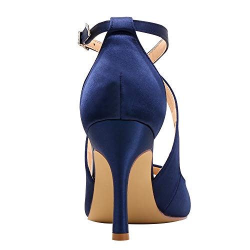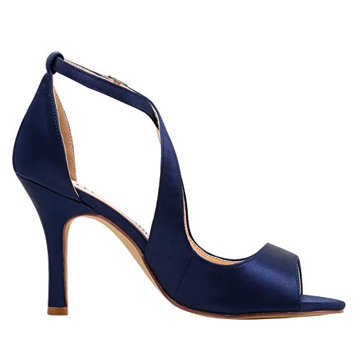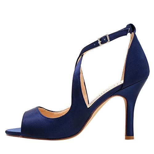 Duosheng & Elegant HP1820 Donna Punta Aperta Tacchi a Spillo Fibbia Satin Cinghietti Sandali da Sera Blu Marina EU 40