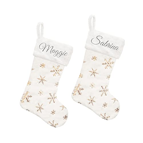 Duosheng & Elegant White Christmas Calze 2 PCS Large Golden Branch Calze Calze di Natale Personalizzate, Adatte per la Decorazione di Feste in Famiglia