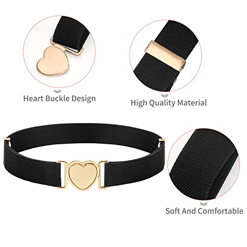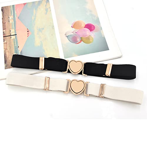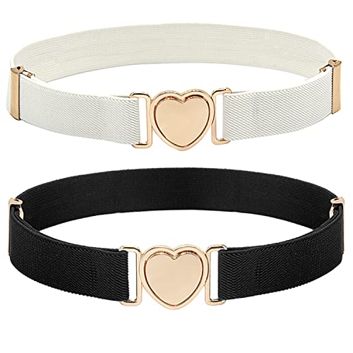DUOXIN 2 Pezzi Cinture Elastiche per Bambini, Fasce Lombari Ragazze Elastico Cinture Elastiche Regolabili Cintura Uniforme con Fibbia Cuore