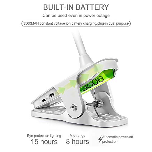 Duoying - Luce da lettura a clip, USB a LED, flessibile, lampada da comodino con morsetto, lampada da scrivania per bambini, luminosità regolabile, protezione per gli occhi per letto e ufficio