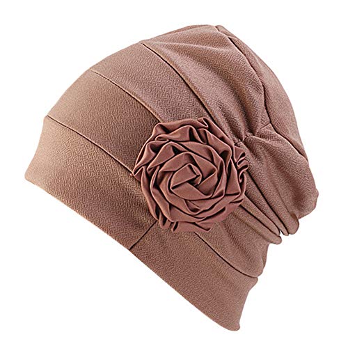 DuoZan Cappello Pieghettato di Perdita di Capelli del Cappello del Beanie del Fiore del Turbante della chemio per Il canc, Cachi, Taglia Unica