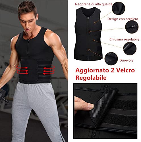 DUPELEC Tute Dimagranti Uomo Fascia Addominale Neoprene per Perdita di Peso Canotta,Body Shaper Canotta da Allenamento Gilet Sauna Sportivo Sudore Muscolare (L)