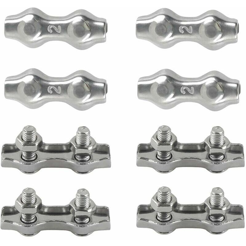 Materiale: - Pinze per cavi duplex in acciaio inossidabile 304, l'acciaio inossidabile 304 ha un'eccellente resistenza alla ruggine, resistenza alla corrosione e buona resistenza alla corrosione dei cristalli. Resistente all'usura, superficie lucida, durata a lungo termine, antiruggine, anticorrosione, anti-custodia. Funziona bene in ambienti interni ed esterni umidi 【Facile da usare:】 Il serracavo duplex è composto da bulloni e dadi, rondelle, che hanno una maggiore capacità di bloccaggio e maggiore stabilità. Il morsetto duplex è caratterizzato da un design semplice e pratico e facile da usare. Quando lo si utilizza, ruotare il dado con una chiave a doppio mandrino, quindi avvolgere il cavo su ciascun lato del bullone, quindi utilizzare una chiave appropriata per serrare il dado. 【Ampia applicazione: 】 Robuste pinze per cavi sono una necessità della nostra vita. La clip duplex può essere utilizzata per fissare la corda di lino, la vela solare, la tenda da sole, il banner, il cavo e