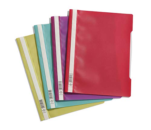 Durable 257320 Cartellina ad Aghi Clear View, Formato A4, Fronte Trasparente e Retro Colorato, Etichetta Longitudinale, Turchese, Confezione da 50 Pezzi