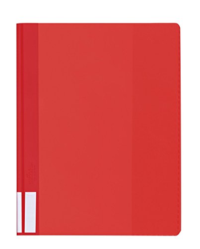 Durable 268103 - Cartellina Ad Aghi Clear View, Formato A4+, Copertina Trasparente, Retro Colorato, Pressino Fermafogli, Rosso, Confezione Da 25 Pezzi