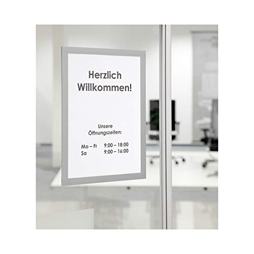 Durable 487223 Duraframe A4, Cornice Espositiva Adesiva, per Superfici Lisce e Solide, Formato A4, Confezione da 2 Pezzi, Argento Metallizzato