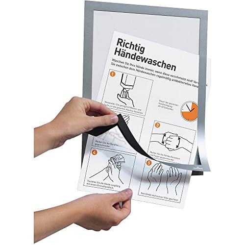 Durable 487323 Duraframe A3, Cornice Espositiva Adesiva, per Superfici Lisce e Solide, Formato A3, Confezione da 2 Pezzi, Argento