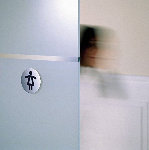 Durable 490423 - Pittogramma tondo, adesivo, con simbolo serigrafatoWC donne, acciaio inossidabile, diametro 83 mm, argento metallizzato