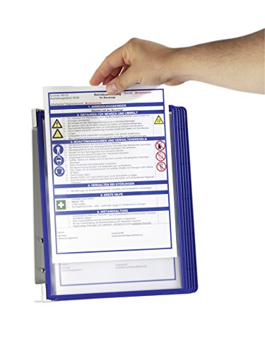 Durable 555107 Vario Wall 5, Leggio da Parete, 5 Pannelli, Formato A4, Cavalierini Rimovibili, Blu