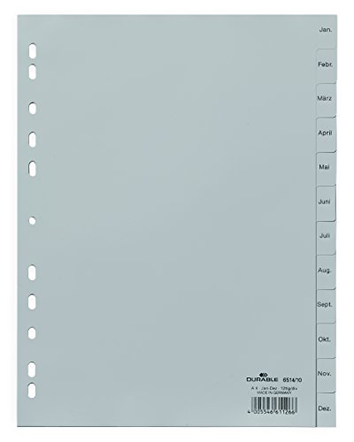 Durable 651410 - Divisorio con tasti prestampati Jan.-Dez., f.to A4 verticale, 12 tasti, foratura universale, grigio, 25 Pezzi
