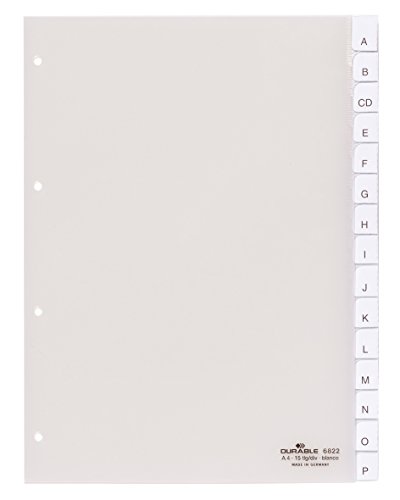 Durable 682219 - Divisorio con Cavalierini Termosaldati e Set di Etichette, Formato A4, 15 Tasti, Foratura 80 x 80 x 80 mm, Trasparente