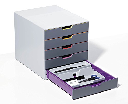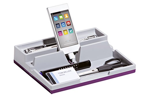 Durable 761312 - Varicolor Desk Organizer, portaoggetti, due ampi scomparti, sistema passacavo a scomparsa, 190x50x240 mm, Grigio/Viola opaco