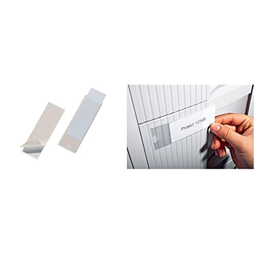 Durable 807419 Pocketfix, Tasca Adesiva, Apertura Lato Corto, Inserti Inclusi, 10 Pezzi, 129 x 42 mm, Trasparente & 802119, Pocketfix, Tasca Adesiva, Apertura Lato Corto, Inserti Inclusi, 10 Pezzi