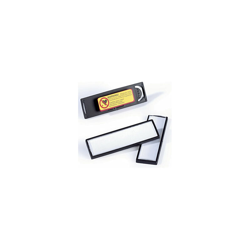CLIP CARD con magnete, alt. x largh. 17 x 67 mm, nero, conf. da 25 pz. Fornitura = montato. Altezza = 17 mm. Larghezza = 67 mm. Materiale = plastica, polistirene. Tipo di fissaggio = con strisce magnetiche. Colore = nero. Tipo di prodotto = badge con calamita. Con finestra in acrilico, arcuata e trasparente con effetto lente di ingrandimento. Per un fissaggio semplice e sicuro, anche su tessuti delicati. Tenuta salda grazie a magnete doppio. Finestra in acrilico trasparente e antigraffio.