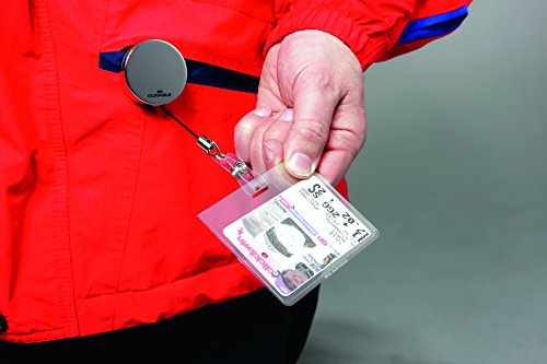 Durable 822823 - Chiocciola Yo-Yo Cromata, Clip di Aggancio in Metallo sul Retro, Fascetta Trasparente con Bottone a Pressione, Argento Metallizzato