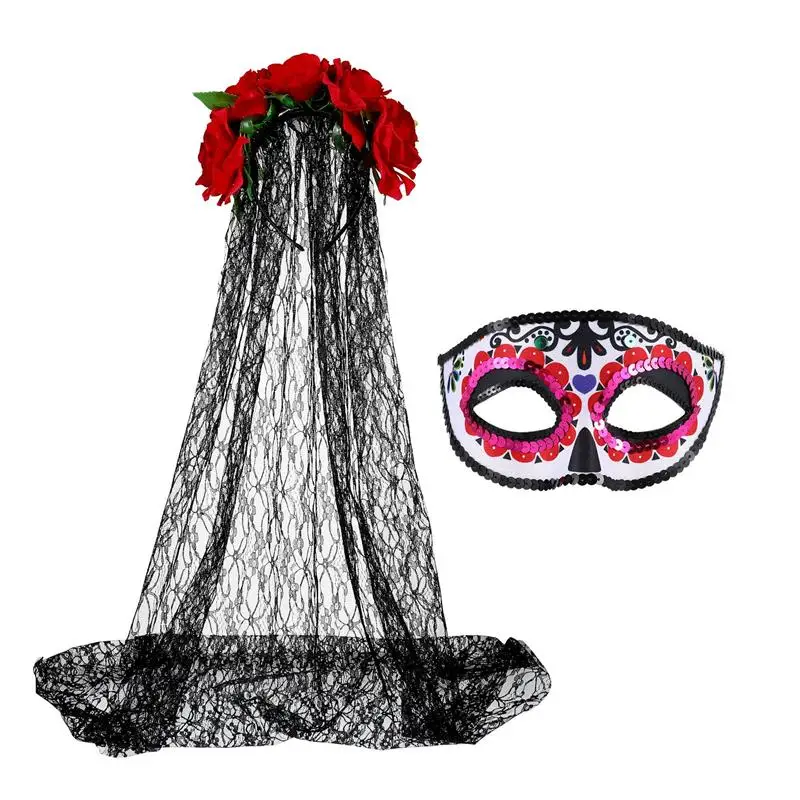 1 Set Durable Comfortable Rose Veil Headband Rose Headpiece for Cosplay Photography