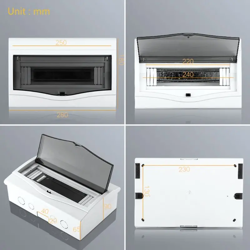 Durable Plastic Electrical Distribution Box Home Lighting Box for 2-4/5-8/9-12 Ways Surface Mounted Circuit Breaker