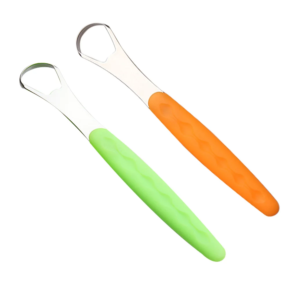 2pcs Durable Stainless Steel Tongue Cleaner Tongue Scrapers Oral Cleaning Tools