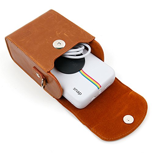 DURAGADGET Custodia per Polaroid Snap Touch | Snap + Panno - con Tracolla - Design Marrone