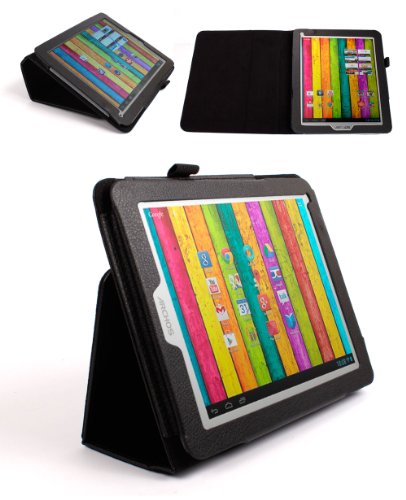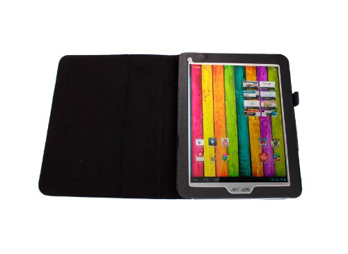 DURAGADGET Custodia Nera In Similpelle Specificamente Disegnata A Foglio / Copertina Per La Tavoletta Archos 80 Titanium 8 pollici Predisposta Con Supporto Girevole & Per Le Funzioni Magnetic Sleep / Wake