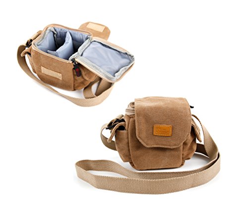 Duragadget - Custodia con tracolla per fotocamera Panasonic Lumix DMC-TZ60, FT30, TZ57, TZ70, SZ10, GF7, XS1, stile vintage, colore: Beige/Sabbia