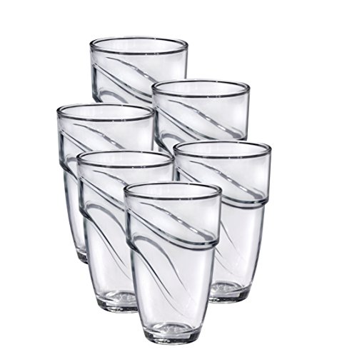 Duralex, Set di 6 bicchieri da acqua, modello Onda, 1054AB06A0111, in vetro trasparente, da 360 ml