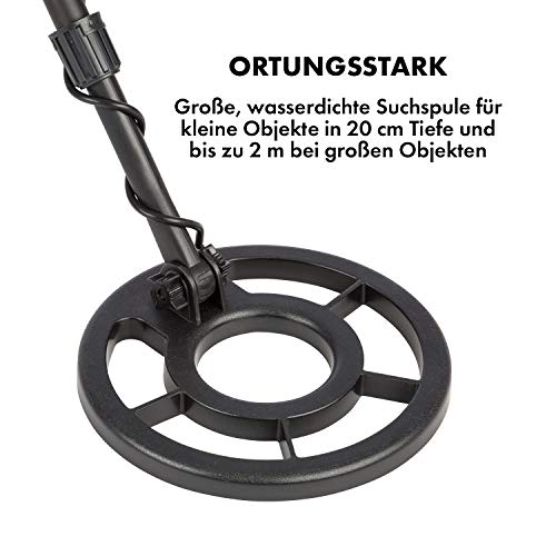 IMPERMEABILE: una cuffia abbinata è inclusa nella consegna. Con la sua bobina di ricerca a tenuta stagna, il metal detector può anche essere utilizzato facilmente su spiagge, rive o in condizioni climatiche avverse.