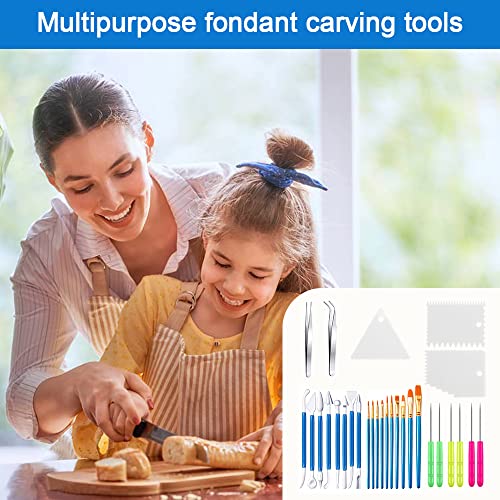 DURANTEY Set di Pennelli per Torta Strumenti di Fondente Strumento per Modellare Torte Fondenti Attrezzi per Modellare Pasta Zucchero Utensili per Modellare Argilla/Dolci/Pasta Frolla/Pane