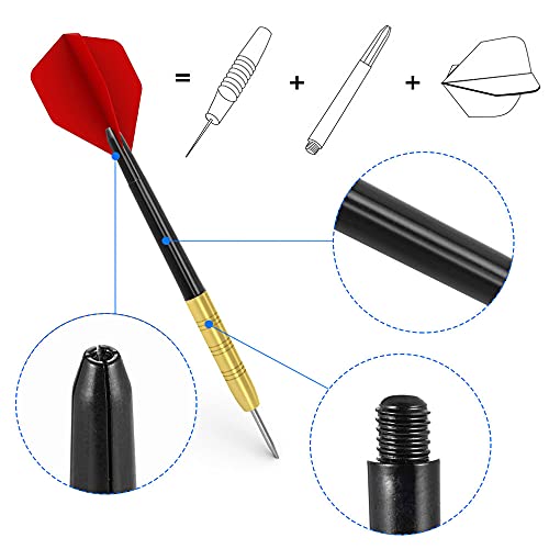 【Design con apertura ad ampio angolo】 - Il design con apertura ad ampio angolo sulla parte superiore dell'albero del dardo rende l'installazione e la rimozione della lama del dardo più facile e conveniente. Il foro guida può aiutarti a inserirlo più facilmente nel dardo, fornendo un caricamento frontale unico per tutti i nuovi modi per ottimizzare la traiettoria di volo. Bilanciamento del peso. E aiuta le freccette a volare stabilmente.