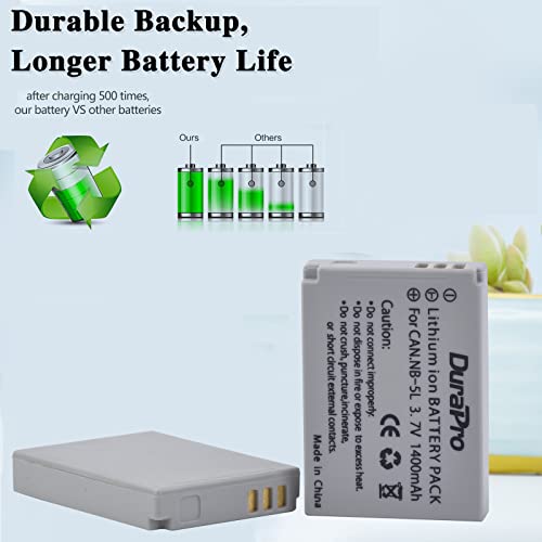 DuraPro Batteria NB 5L NB 5L + caricatore USB LCD per Canon NB-5L Batteria Powershot S100 SX200 SX230 HS SX210 IS SD790 IS SX200 IS SD800 IS SD890 IS