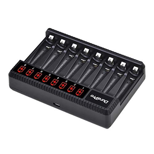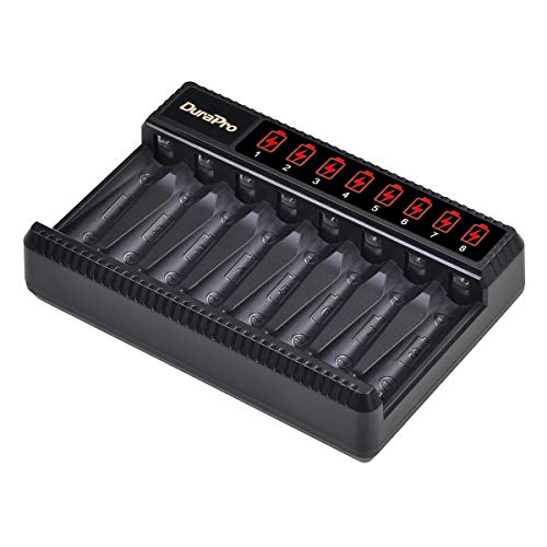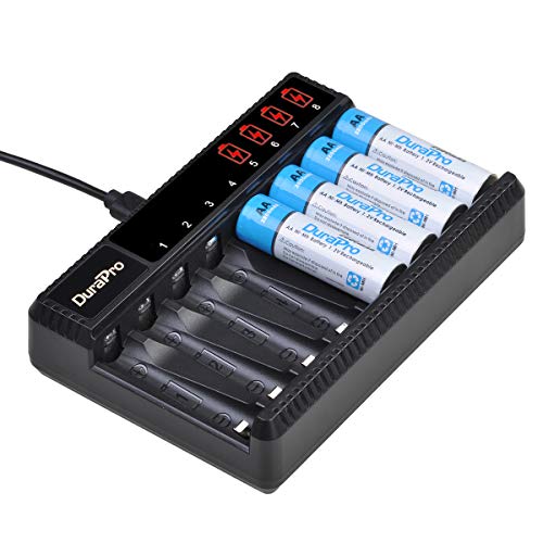 DuraPro - Caricabatteria USB smart, rapido, LCD, 8 scomparti, per batterie ricaricabili Ni-MH e Ni-CD AA e AAA