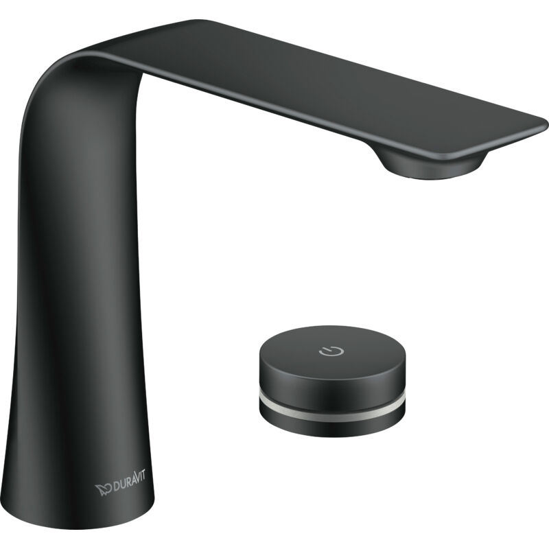 Duravit D.1e Armatura elettronica a 2 fori M con alimentatore incorporato controllo elettronico tramite manopola di controllo, Variazione di temperatura per rotazione visualizzata dal cambio di luce di colore, Blocco operatore per una facile pulizia, Limitazione della temperatura e tempo di funzionamento dell'acqua regolabile individualmente, Disinfezione termica, risciacquo igienico, Funzione di protezione dalle scottature, raggio normale, Trave con funzione di ribaltamento, Sporgenza 148 mm, Pressione d'esercizio consigliata 3 - 5 bar, senza sprechi a comparsa, senza controllo del volume, compresi nella fornitura: Uscita, unità di controllo, Unità di controllo (lunghezza cavo 1200mm), 157 mm