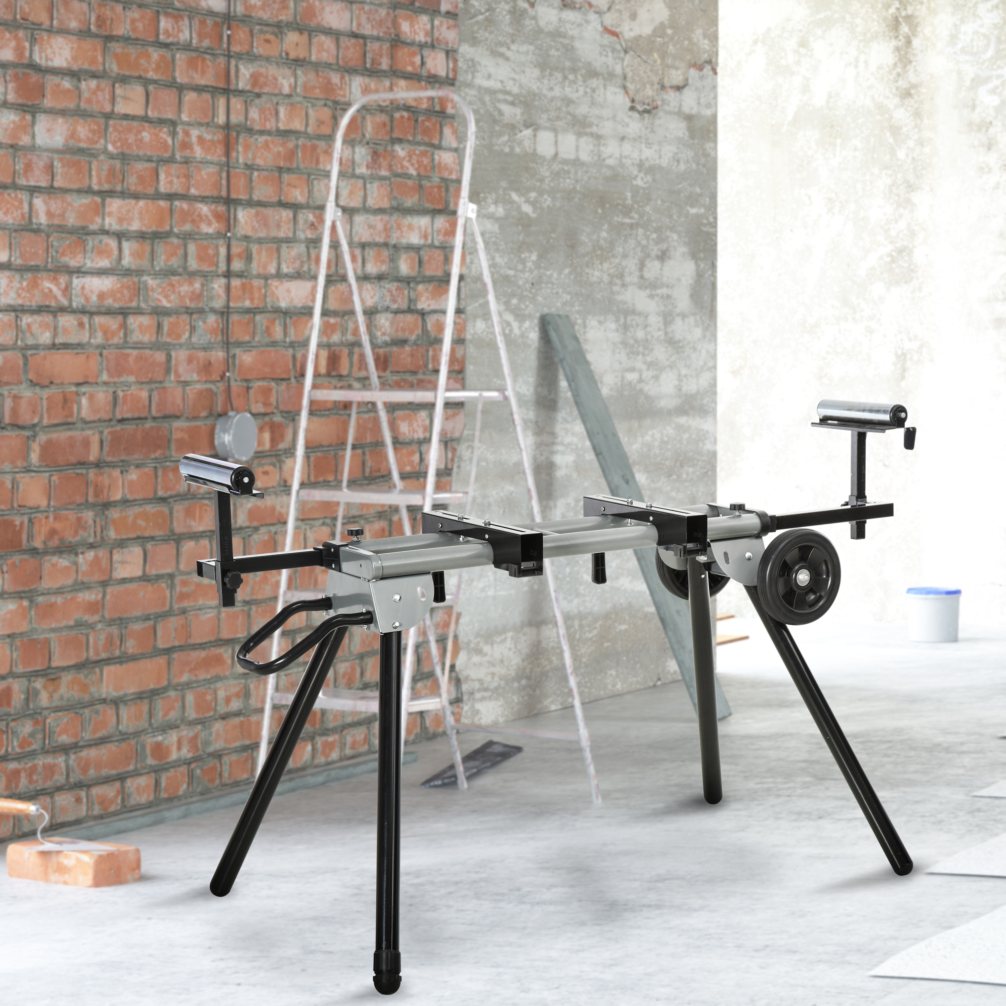 Grazie al supporto per sega a troncatrice DURHAND potrai eseguire i tuoi lavori in modo professionale e sicuro. Il cavalletto è telescopico, pieghevole e dotato di ruote per spostarlo con facilità. Costruito in metallo robusto, garantisce un supporto completo durante l'uso. L'altezza del braccio è regolabile con un morsetto a sgancio rapido, per un'impostazione rapida e semplice. Grazie al suo design universale, puoi usare questo cavalletto da lavoro con la maggior parte delle seghe troncatrici.