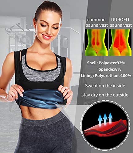 DUROFIT Canotta da Donna Dimagrante Maglia da Allenamento da Donna Tuta Canotta Snellente Sauna Sudore Sportivo Gilet Neoprene Fitness Nero S-M