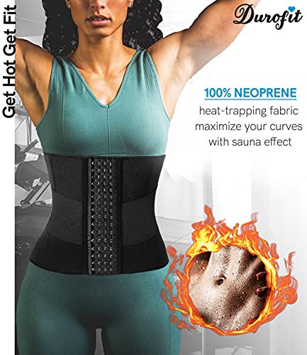 DUROFIT Waist Trainer Donna Dimagrante Fascia Addominale Dimagrante di Neoprene Fascia Lombare Raggiungere L'Effetto di Sauna per Fitness Nero L