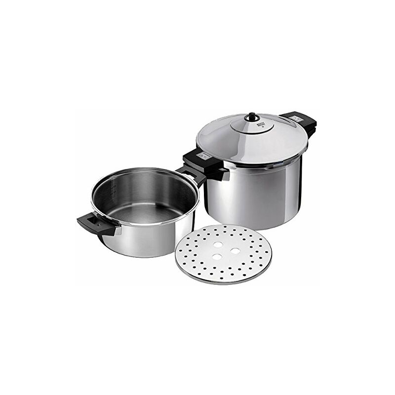Un classico dalla bella forma e con un design facile da utilizzare! Ideale per famiglie grandi e piccole, single o coppie., Vantaggi della cottura a vapore sottopressione di Kuhn Rikon:, Veloce: cuocerete fino al 70% più veloce, Salutare: La cottura a vapore mantiene le vitamine e i sali minerali, Ecologico: risparmierete fino al 70% di energia Il set contiene: 1 Duromatic Inox, Base, 24 cm, 4l 1 Duromatic Inox, Base, 24 cm, 8l 1 Duromatic Inox, Coperchio, Ø 24 cm 1 Cestello Numero articolo Kuhn Rikon: 3014, Volume di consegna:1 Duromatic Inox, Base, 24 cm, 4l 1 Duromatic Inox, Base, 24 cm, 8l 1 Duromatic Inox, Coperchio, Ø 24 cm 1 Cestello