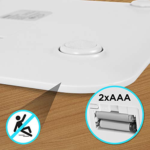 RISULTATI ACCURATI: Basta salire sulla bilancia per avviarla e effettuare una misurazione. Una volta completata la misurazione basta scendere dalla bilancia che si spegnerà automaticamente dopo 10 secondi di inattività. La bilancia va utilizzata su un pavimento piano ed uniforme - non può essere utilizzata su tappeti.