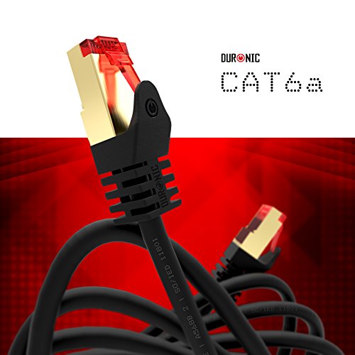 Duronic CAT6a 25m Nero Cavo di Rete Ethernet Crossover Poe schermato CAT6a SF/FTP Cavo ethernet Patch 26 AWG LAN gigabit 10Gbps categoria 6a connettori 8P8C RJ45 per casa Ufficio Alta velocità 500MHz