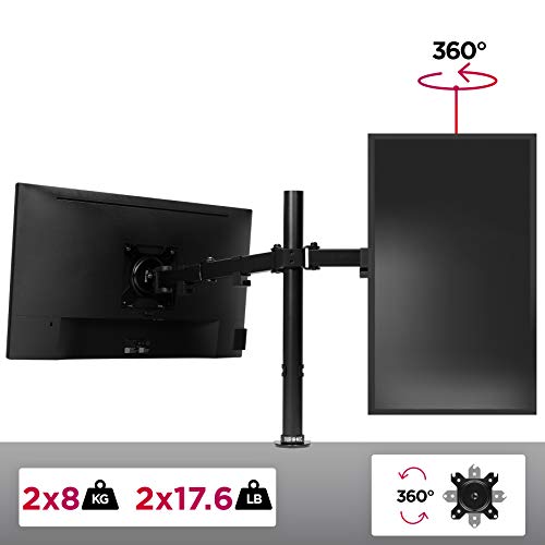 Duronic DM152 BK Supporto scrivania per 2 Monitor 13”-27” | 8 kg per Braccio | Altezza Regolabile | Inclinazione -15°/+15°, Rotazione 180°, Rotazione 360°| VESA 75/100