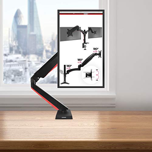 MASSIMA FLESSIBILITÀ: questo supporto per monitor è completamente regolabile, sia in altezza che nella posizione o angolazione del braccio. Grazie al braccio con regolazione a gas, è possibile regolarlo in avanti / indietro, su / giù, spostarlo da sinistra a destra e ruotare di 360 ° fornendo una gamma completa di movimento.