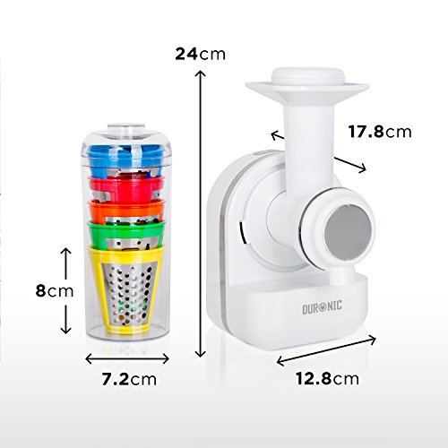 Duronic FP301 tritatutto elettrico da cucina 150W robot multifunzione affettaverdure spremiagrumi sorbetti 5 coni intercambiabili in acciaio INOX