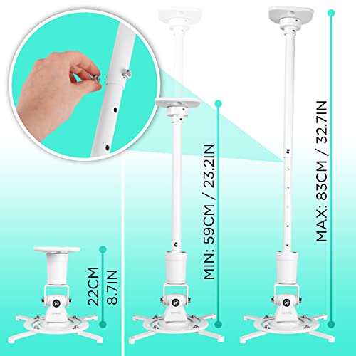 I supporti proiettore a soffitto e da parete sono stati fabbricati con materiali durevoli e di alta qualità per assicurare che siano resistenti e duraturi una volta montati. Questo supporto universale per proiettore potrà sorreggere qualsiasi proiettore che abbia la possibilità di essere montato su una staffa. Inoltre, la portata massima di questo supporto è di 10 kg.