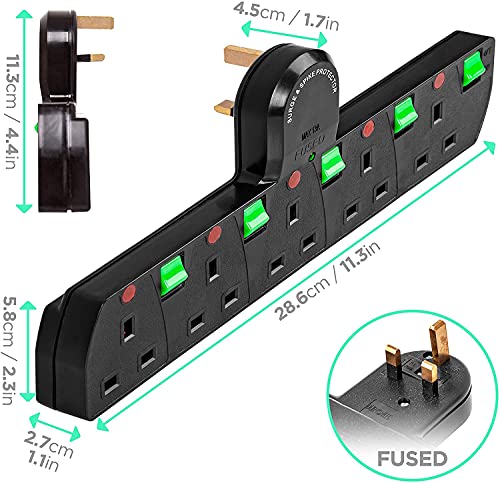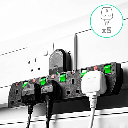 Duronic S125B 5 Way Switched Surge Protected Multi Socket Adaptor - Black