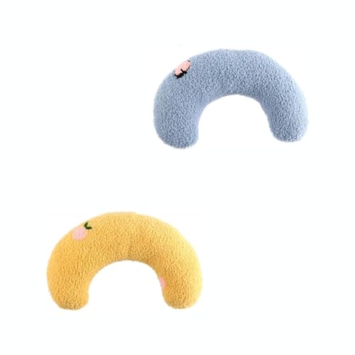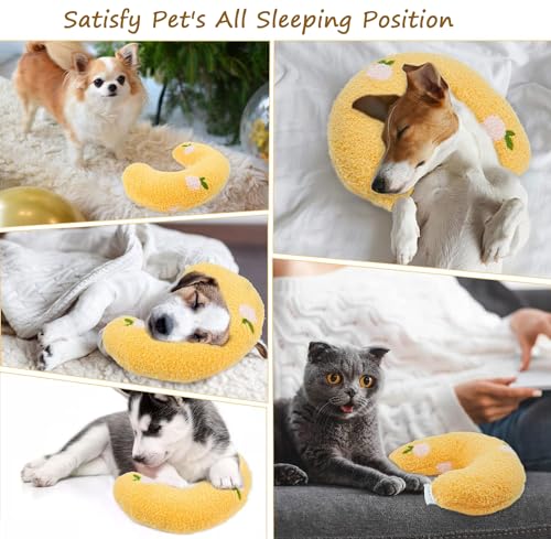 DUTACK Dog Calming Pillow for Small Dogs, Ultra Soft Fluffy Pet Calming Toy,Half Donut Cuddler for Joint Relief Sleeping Improve Machine Washable (Yellow + Blue)