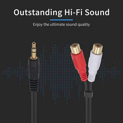 Il cavo audio da 3,5 mm a RCA è principalmente in PVC e metallo, i materiali amichevoli e durevoli portano un tempo di servizio più lungo a questo cavo prolunga audio. I connettori placcati in oro possono ridurre la perdita di segnale e il rumore.