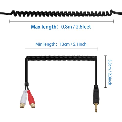 Il cavo a molla da RCA a 3,5 mm può essere esteso, è possibile allungare fino a un massimo di 80 cm.