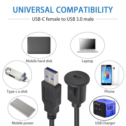 【Cavo di estensione ad incasso USB 3.0 USB C Impermeabile】Facile da installare e plug-and-play, questo cavo di estensione USB impermeabile fornisce una soluzione comoda per estendere i trasferimenti di dati. È perfetto per l'uso su pannelli di auto, barche, motocicli e altre applicazioni.