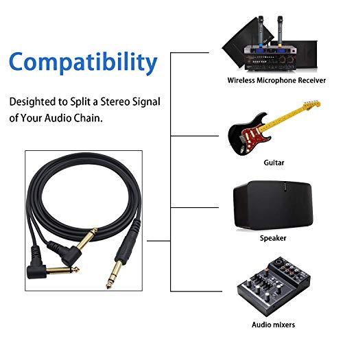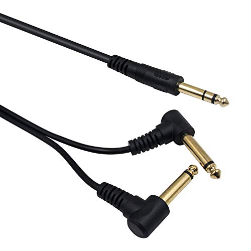 Duttek Guitar y cavo,1.5 metri placcato oro 6.35 mm 1/10,2 cm maschio TRS stereo a Dual 2 x 6.35 mm 1/10,2 cm maschio TS mono 90 gradi ad angolo retto y splitter audio cavo (635 M/2MR)