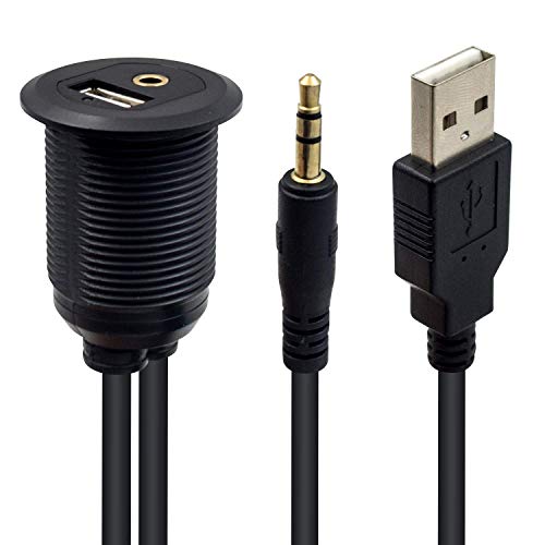 Duttek, cavo USB e 3,5 mm, cavo USB 2.0 e 3,5 mm, cavo di montaggio per auto da 3,5 mm e prolunga USB 2.0 AUX per cruscotto impermeabile, per auto, barca e moto, 1 m